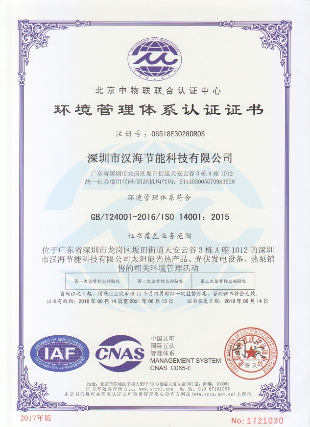 深圳市漢海節能科技有限公司成立于2011年,注冊資金6000萬元,總部設在深圳,是一家集設計、研發、施工于一體的專業化從事太陽能熱水工程、熱泵中央熱水工程、中央空調、光伏發電、水處理等新能源及節能環保行業的綜合服務商和工程商。在將近10年的發展歷程中,始終走在行業發展的前沿,是專業從事太陽能光熱、光伏,空氣源、水源熱泵,中央空調,水處理產品的設計、安裝、售后服務為一體的高新技術企業;是專業提供太陽能中央熱水工程、熱泵中央熱水工程、中央空調工程、光伏發電工程、水處理工程等全面解決方案的供應商和工程商,產品涵蓋太陽能集熱器、空氣源熱泵、水源熱泵、中央空調、光伏組件等,是新能源的倡導者和推動者。